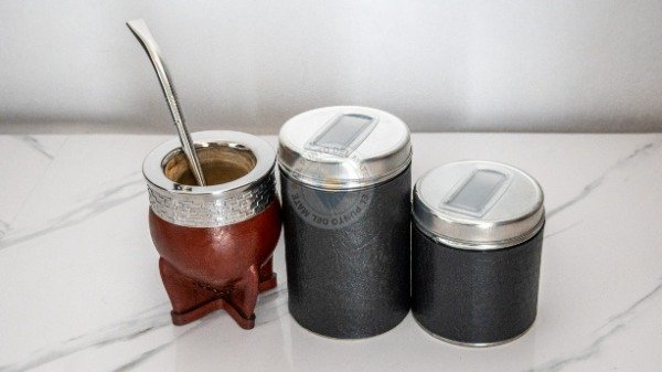 Práctico contenedor con pico vertedor para facilitar el uso diario. Ideal para llevar yerba o azúcar a donde vayas, manteniendo su frescura y evitando derrames. Podés elegir entre la lata con funda de eco-cuero o la lata grabada con algún diseño que elijas.