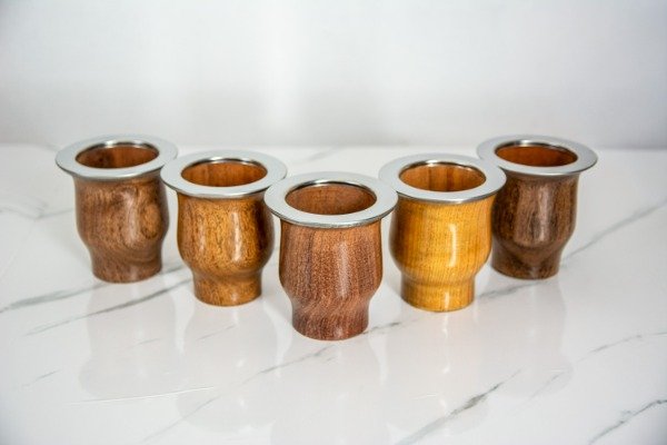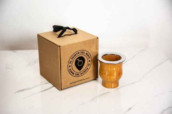 Tradicional, cálido y resistente. Hecho en madera de algarrobo macizo, este mate destaca por sus tonos naturales y la nobleza de su material. Su forma camionera facilita el cebado prolongado, perfecto para compartir largas rondas o disfrutar en soledad. Cada mate es artesanal y único, con vetas que le dan personalidad propia.